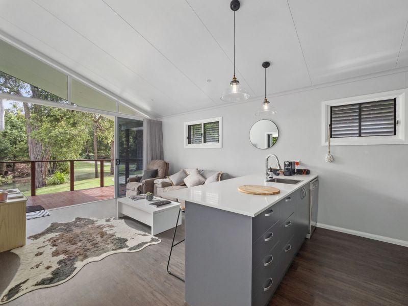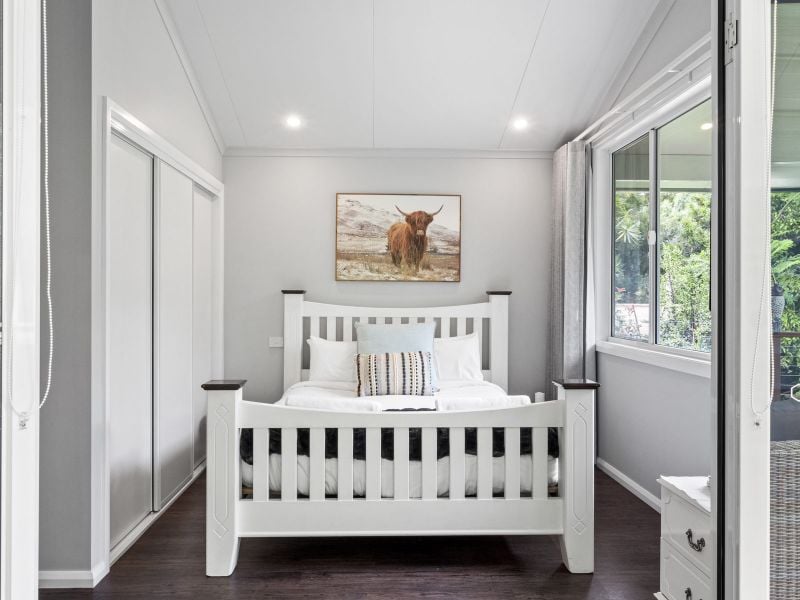 This stunning two bedroom retreat offers a contemporary kitchen with all the necessary appliances. Sit back and relax or entertain in the spacious living area which overlooks the lush greenery. You will have access to the smart TV with Netflix in the lounge area, bedrooms with TVs as well. Hiddleston Retreat offers two bedrooms, one with a queen sized bed, the other with a double bed. The bathroom has been designed with disability access in mind spacious, accessible, handrails and separate toilet. Other inclusions are laundry facilities, Alfresco covered deck with an outdoor kitchen, BBQ, dining area and large TV.