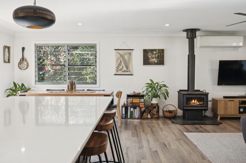 The light-filled home features open-plan living anchored by a stylish entertainer's kitchen, flowing seamlessly to a north-facing deck with serene rural views. Three generous bedrooms include a spacious master suite with ensuite, and a cosy wood fire brings character and warmth through the cooler months.