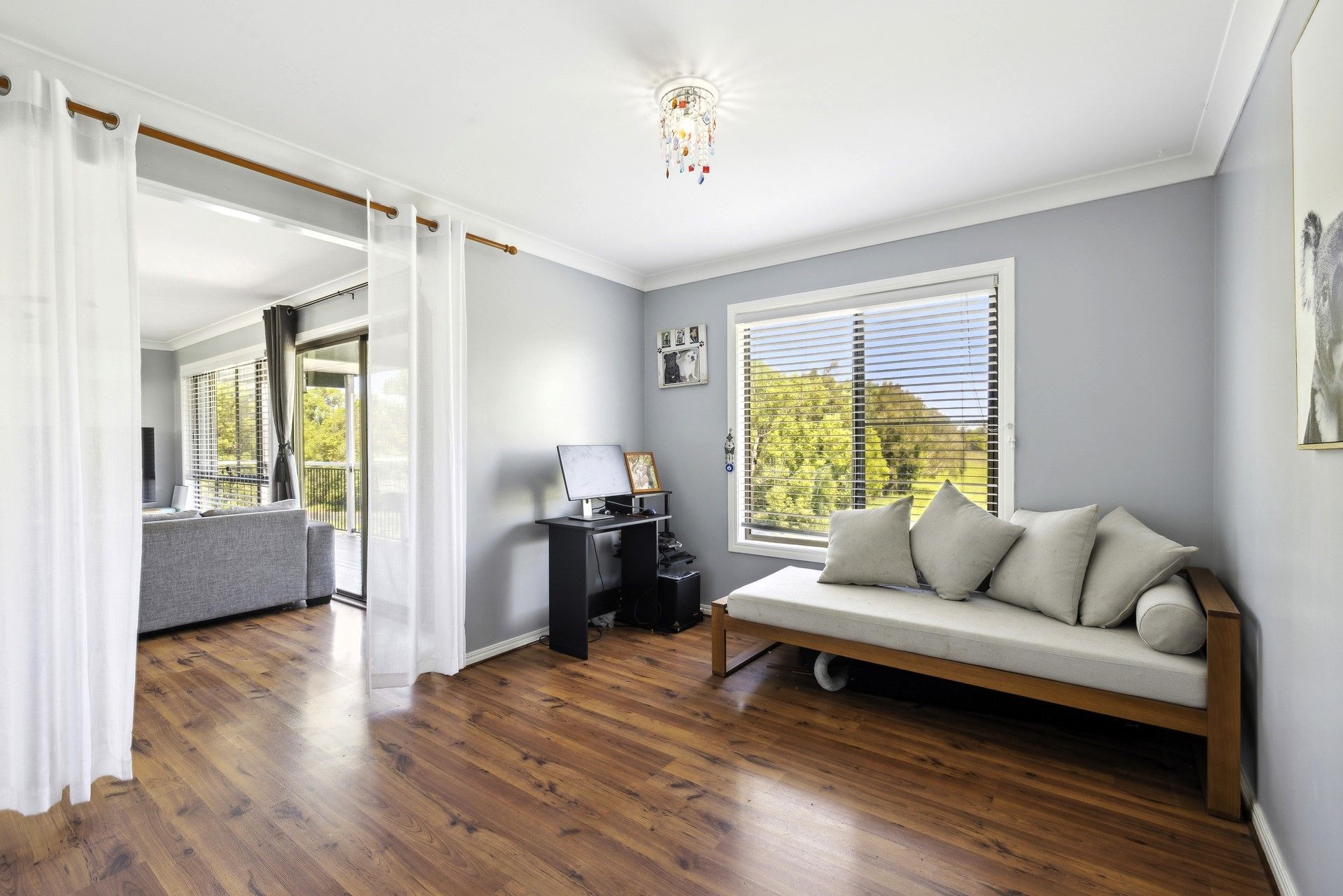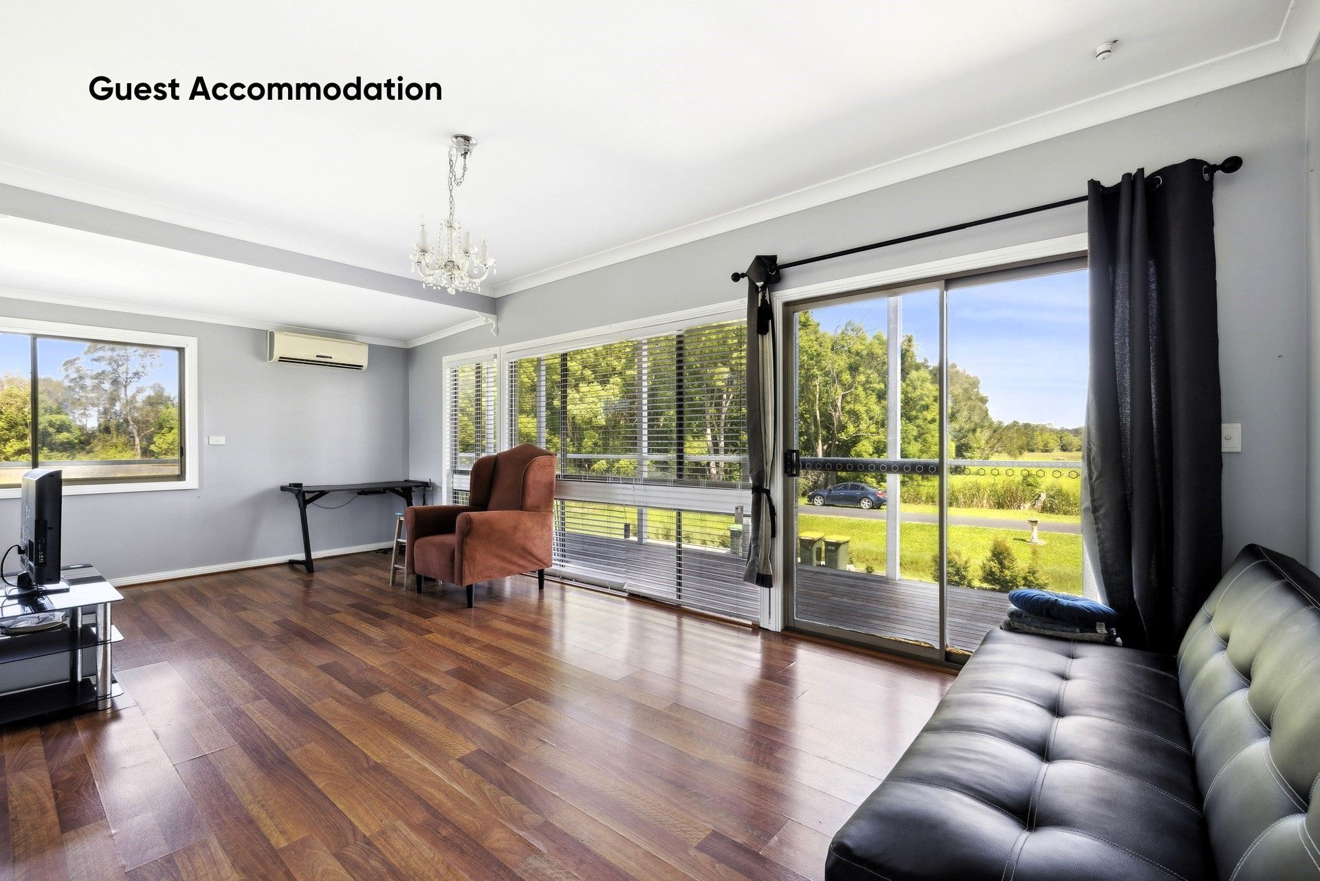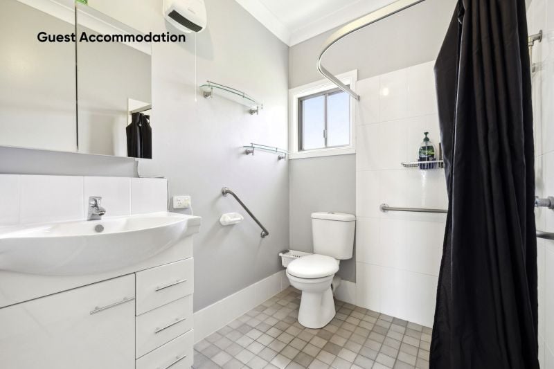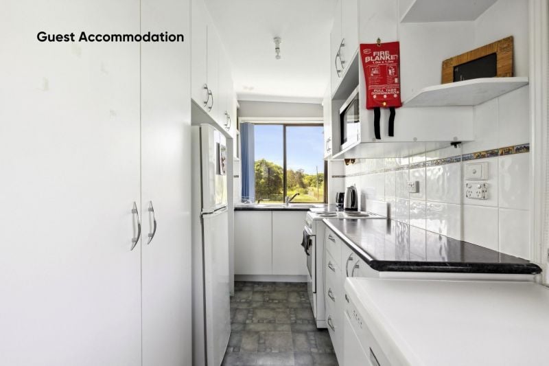 Step outside onto the elevated deck, a serene spot for dining or simply taking in the view, while a second concrete entertaining area in the yard is the perfect setting for a firepit or BBQ, making outdoor gatherings an absolute delight. For hosting guests or extended family, a thoughtfully designed, self-contained guest accommodation, attached to the main house yet complete with its own entrance, provides the ultimate comfort with a spacious bedroom, built-in robe, private deck, and a fully equipped kitchen.