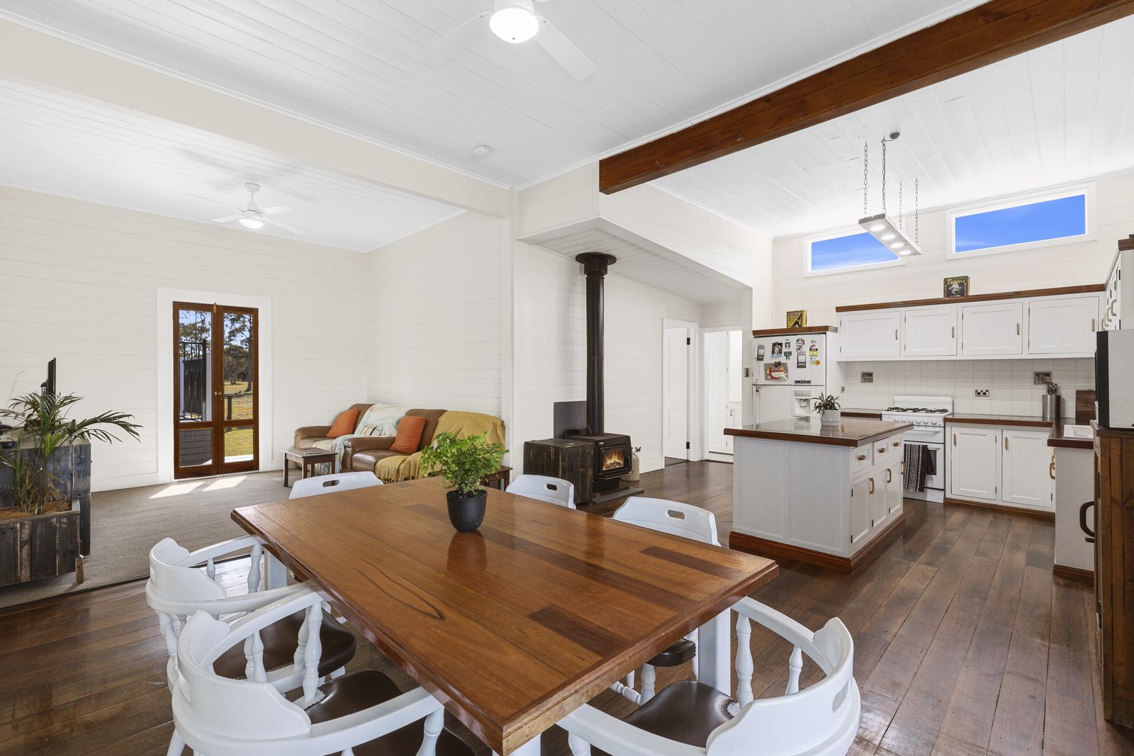 The home itself is set-back from the road and has been completely restored to its former glory plus more! Featuring 4m ceilings, french doors, timber windows with sidelights, polished hardwood floors, claw foot bathtub, combustion fireplace and large wrap around covered verandah. Added to this are modern conveniences including walk-in pantry and storeroom, office/study nook with wireless NBN and wireless home phone, ceilings fans, air-con in the living area, modern kitchen with gas stove, solar HWS and above ground plunge pool with decking surrounds. The property has been freshly painted inside and out, with its crisp white and natural timber colour palette creating a welcoming warmth. While keeping the old-style charm, the house layout has been modernised, opening up walls in the living, dining and kitchen area to create open plan living and a central heart of the home. The main bedroom has a full wall of built-in cupboards with french doors opening out onto the verandah, while the second and third bedrooms are of a good size with wooden robes. There's also plenty of car storage and workshop space with a two-bay carport, large 7m x 13m workshop shed with a 3 bay carport at one end, and smaller 6.5m x 5.5m shed.