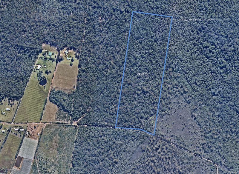 The second 50 acre parcel of land is approx. 8 mins further down Omega Drive and is covered in mostly bushland, logged around 13 years ago, and with approx. 5 acres of wetland also. This parcel of land does not have a building entitlement and cannot be subdivided off.