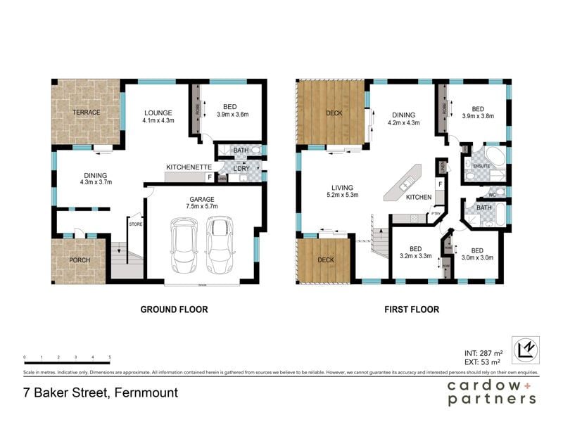 The lower floor plan features a bedroom, bathroom, lounge, dining/kitchenette which flows to a covered terrace and the landscaped gardens.