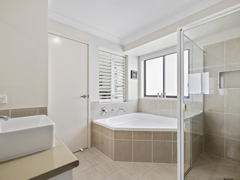 Upstairs featuring covered outdoor living areas perfect for entertaining, open-plan dining/kitchen/lounge, and three bedrooms, with the master featuring an ensuite/built-ins and a third bathroom. The property also includes a double lock-up garage, A/c, ceiling fans, plantation shutters and a fenced yard.