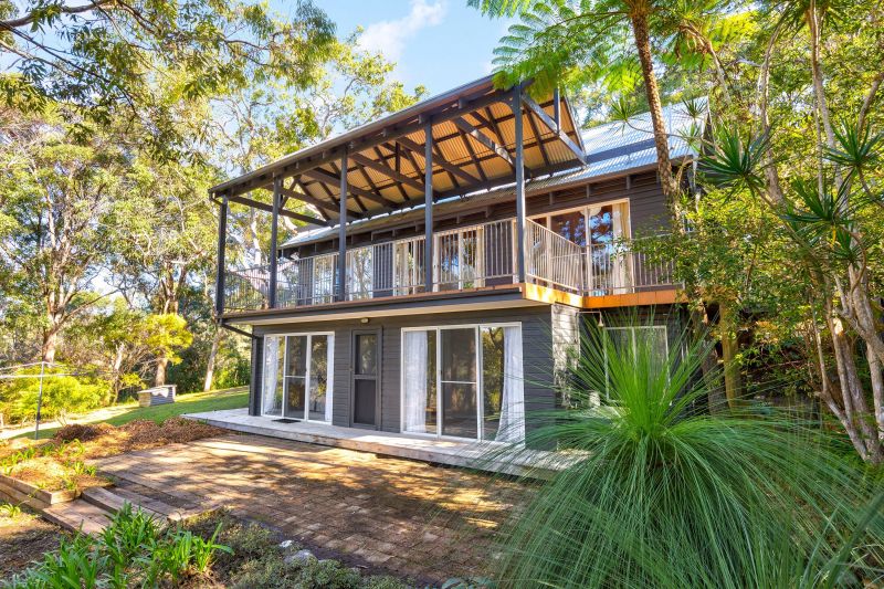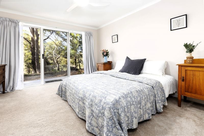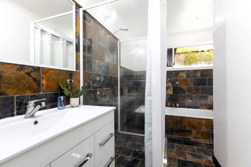Downstairs, you'll find two generously sized bedrooms, both with built-in robes and lovely bush views, a slate-tiled bathroom, an internal laundry with an additional toilet, and a large sun deck with an outdoor bath.