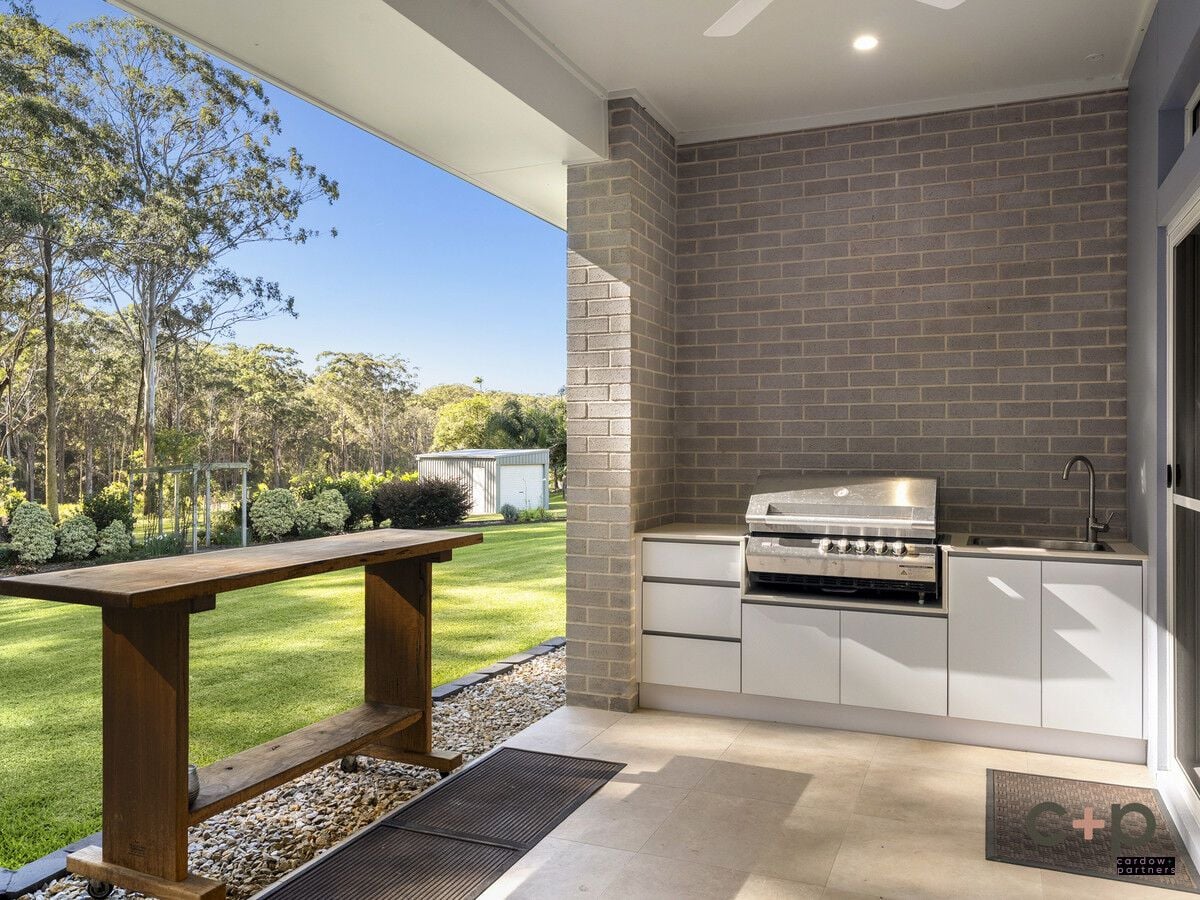 Step outside to the expansive covered alfresco area, complete with built-in BBQ facilities - the ideal space to host family and friends while overlooking the lush, landscaped grounds. Beyond the entertaining zone, the backyard unfolds into a scene of natural beauty, with established gardens, a flourishing veggie patch, and a tranquil bushland backdrop where kangaroos graze, koalas rest, and native birdlife thrives.