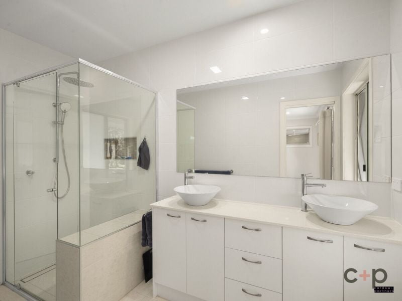 The master suite is a peaceful retreat, offering a large walk-in robe, a luxurious ensuite with floor-to-ceiling tiles, double vanity, and private access to the backyard - perfect for enjoying a quiet morning coffee with the birdsong. Three further bedrooms are thoughtfully designed, each with built-in or walk-in robes, and a stylish main bathroom with a double vanity and freestanding bath caters to the rest of the household. A separate powder room offers added convenience for guests.