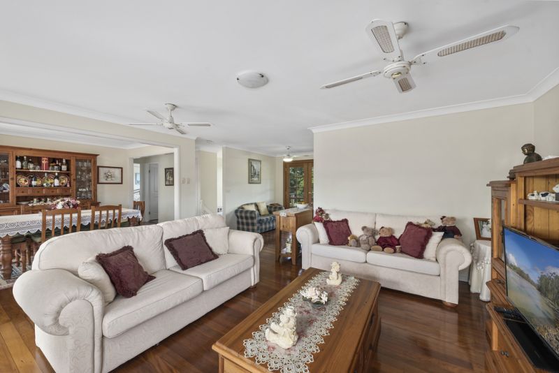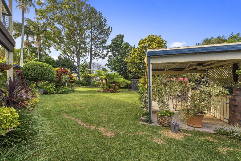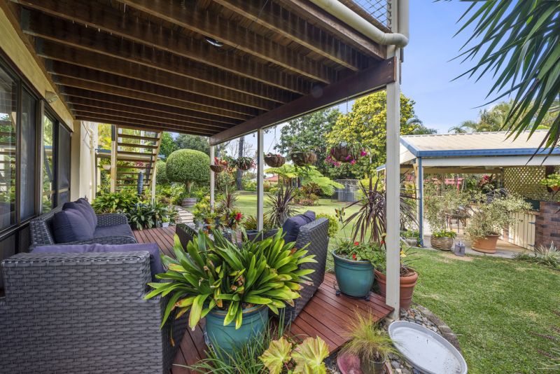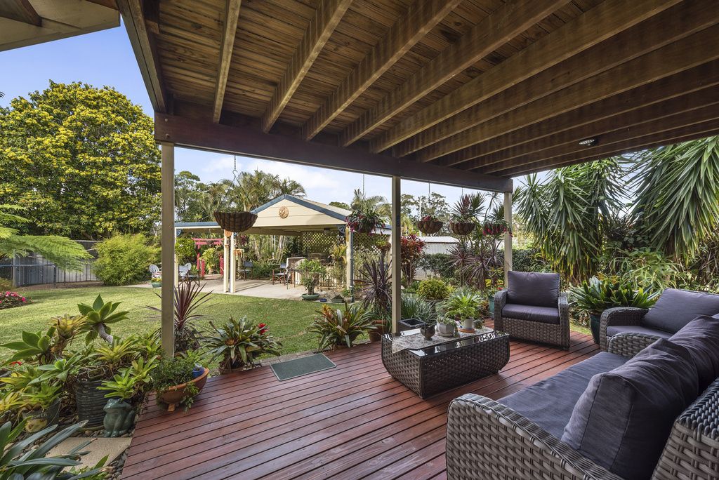 Immaculately presented & maintained this solid rendered brick & tile home has been created for ease of living and is perfectly designed to suit our North Coast temperate climate & outdoor lifestyle. There are three large bedrooms with fans & built-ins, plus an office. Upstairs the bathroom has been fully renovated, floors polished & new appliances installed. The living areas are connected to 3 verandahs perfectly positioned for all seasons, to harvest sunshine, shade & a garden vista. Established tropical gardens, with bird aviaries/ferneries, ponds, a covered BBQ area & lush green lawns surround this home. This flat elevated north facing 1096m2 block has easy street access to the large triple garage. "Sunset Lakes Estate" in Woolgoolga is close to Woolgoolga Lake & creek with walking tracks to the beach, bushland, Woolgoolga town centre, High School, tennis courts & sporting fields. It is one of the most desired areas of Woolgoolga so if this home appeals, don't delay inspecting by calling today.