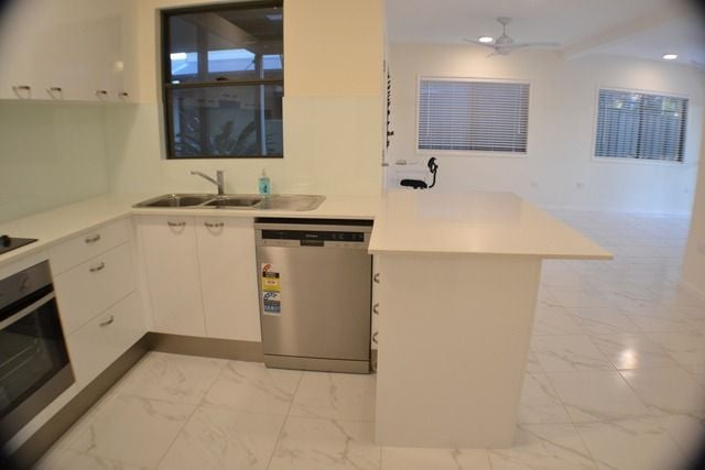 This modern duplex is only a short 200m walk to the beach and consists of 3 bedrooms, 2 with built ins, 2 bathrooms, kitchen with dishwasher & open plan kitchen, dining & living, internal laundry, large rear covered entertaining deck, outdoor shower, fenced backyard & single carport. All rooms have extra high 2.7m ceilings with built in fans.