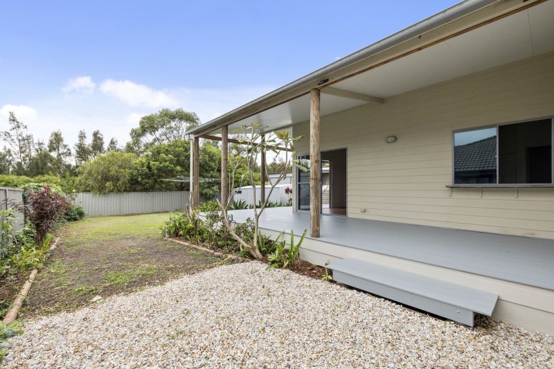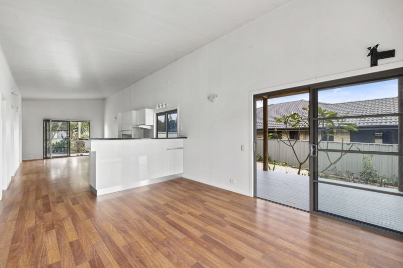 Boasting open plan living with high ceilings and plenty of natural light, and taking advantage of our temperate coastal climate, the property is designed over a single level, with large L shape undercover deck at the rear perfect for entertaining year-round. All three bedrooms feature BIR's, with the master bedroom at the rear with glass sliding door onto the back deck and direct access to the main bathroom.