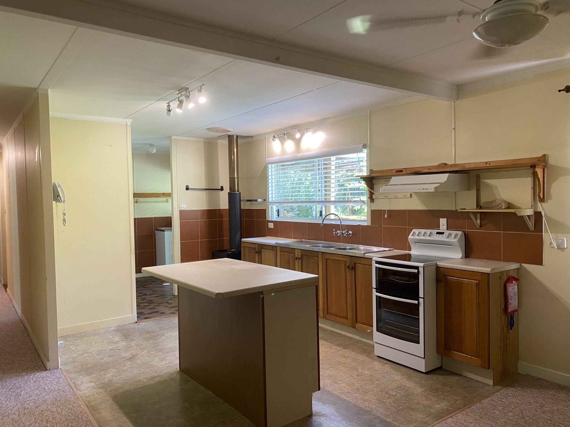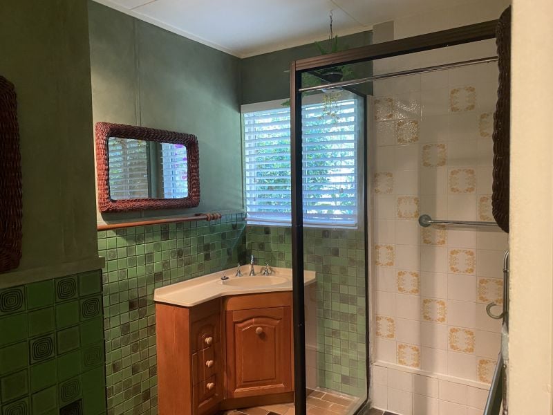 This older style, clean home features 4 bedrooms with ceiling fans throughout, old style kitchen, L-shaped living area with air-conditioner, bathroom with separate toilet, laundry.