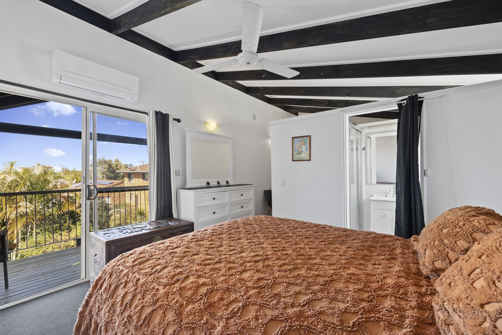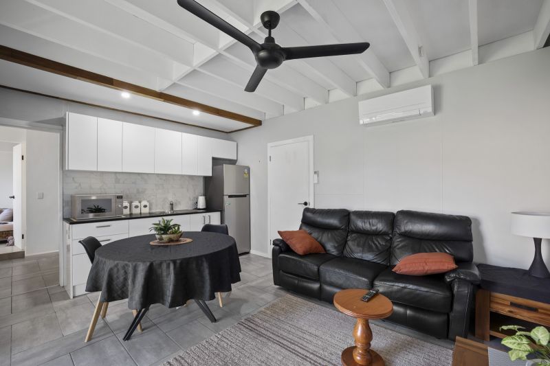 At the front of the property is the master bedroom, which opens into the main 3-way bathroom. Two other bedrooms with BIR's, and the main living room that flows through to kitchen/dining and extra living space complete this area. The fourth bedroom, is located in the double storey extension at the rear, with ensuite and private balcony with ocean glimpses upstairs and living room with kitchenette that opens onto the back garden downstairs. This accommodation at the rear does have access down the side of the home and is therefore suitable for AirBNB or extended family living, a separate part of the home that can be completely locked off from the rest and accessed via the gate and door on the left hand side of the home.