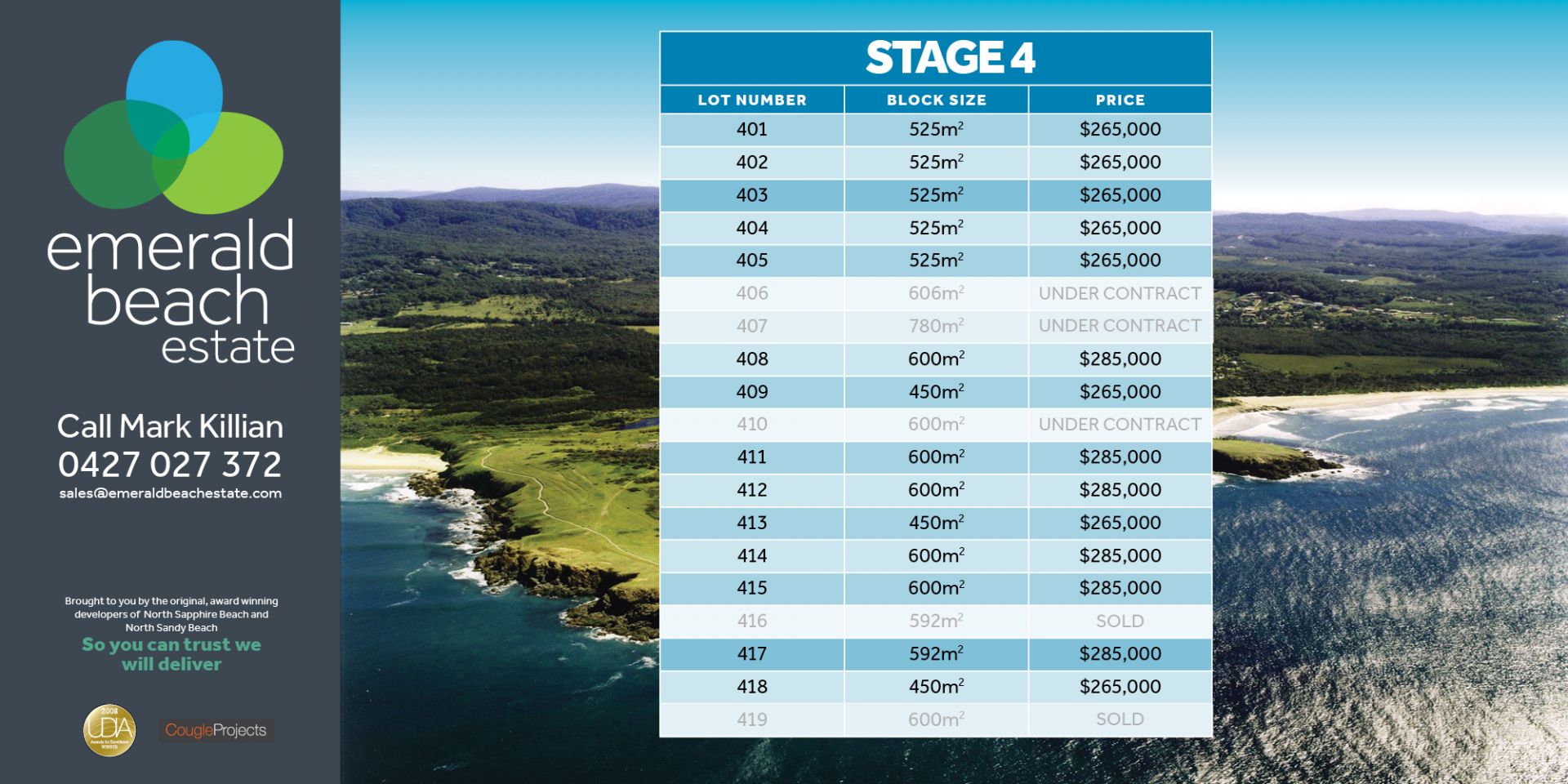 For updated copies of site plan & price list please call or email Mark on mark@emeraldbeachestate.com.