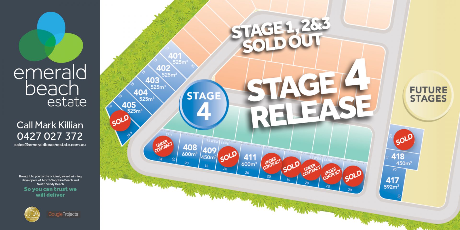 For updated copies of site plan & price list please call or email Mark on mark@emeraldbeachestate.com.au